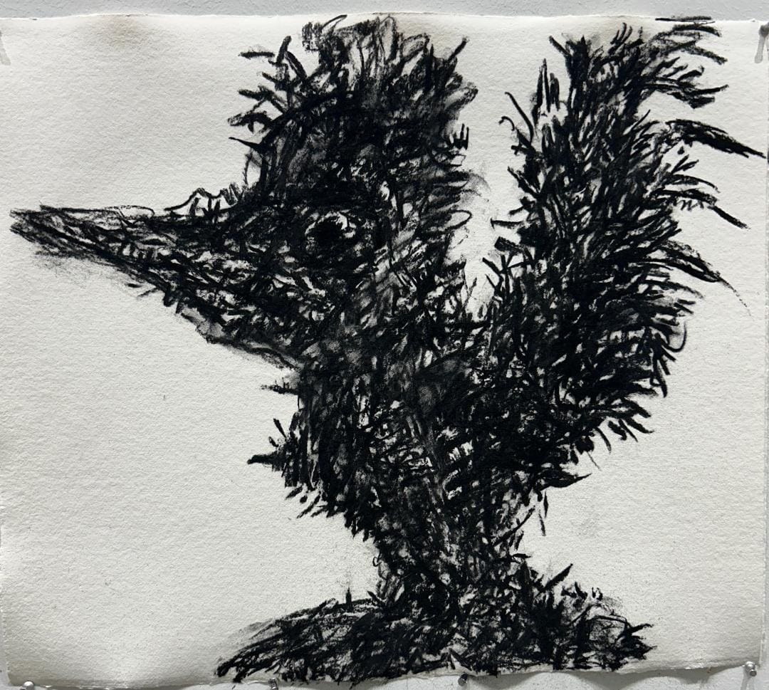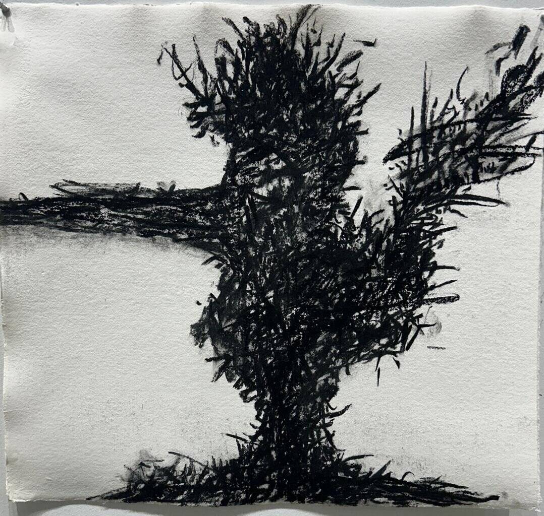 Alison’s Ordinance v.t. Milt. obs. | 2024 charcoal on gray paper 22 x 30″