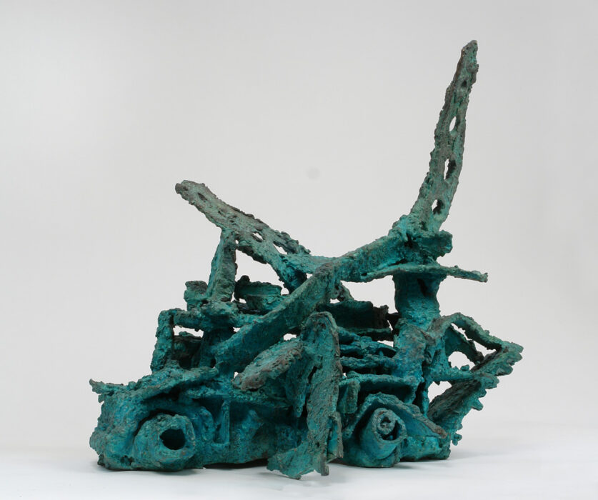 Although the works have a primitive quality, they suggest an intentionally formal direction which reminds the viewer that the artist is mediating between the forces at play. Thus, the formal sophistication of Bones and Balance Sheet is no accident, but surely the result of sharpened sensibility. The artist’s intrusion is controlled, however — if he persuades he does so gently, and his images at times seem like inert matter thinking about becoming alive. The communion between artist and work is so fine-tuned that neither integrity is inhibited.