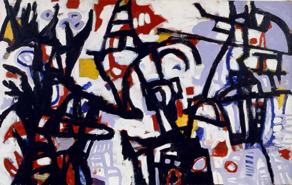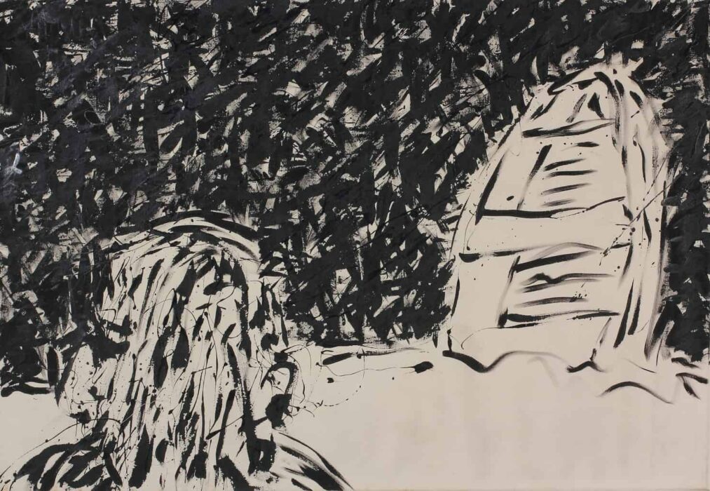 The acrylic paintings have an almost frightening energy with their gouts of black paint in fierce contrast with the areas of white.