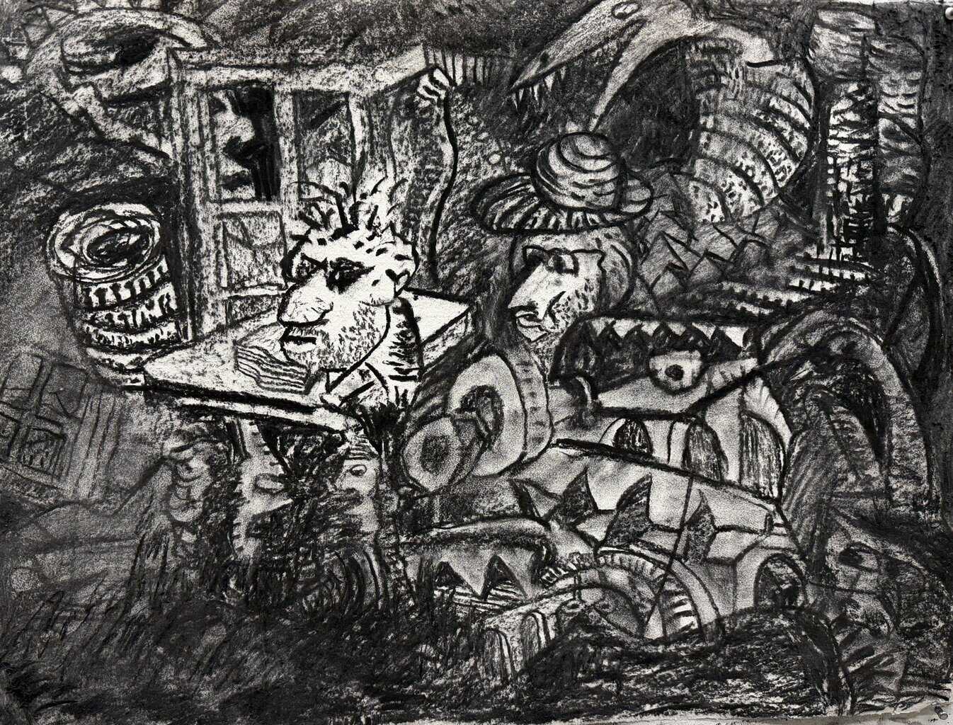 Alison’s Ordinance v.t. Milt. obs. | 2024 charcoal on gray paper 22 x 30″