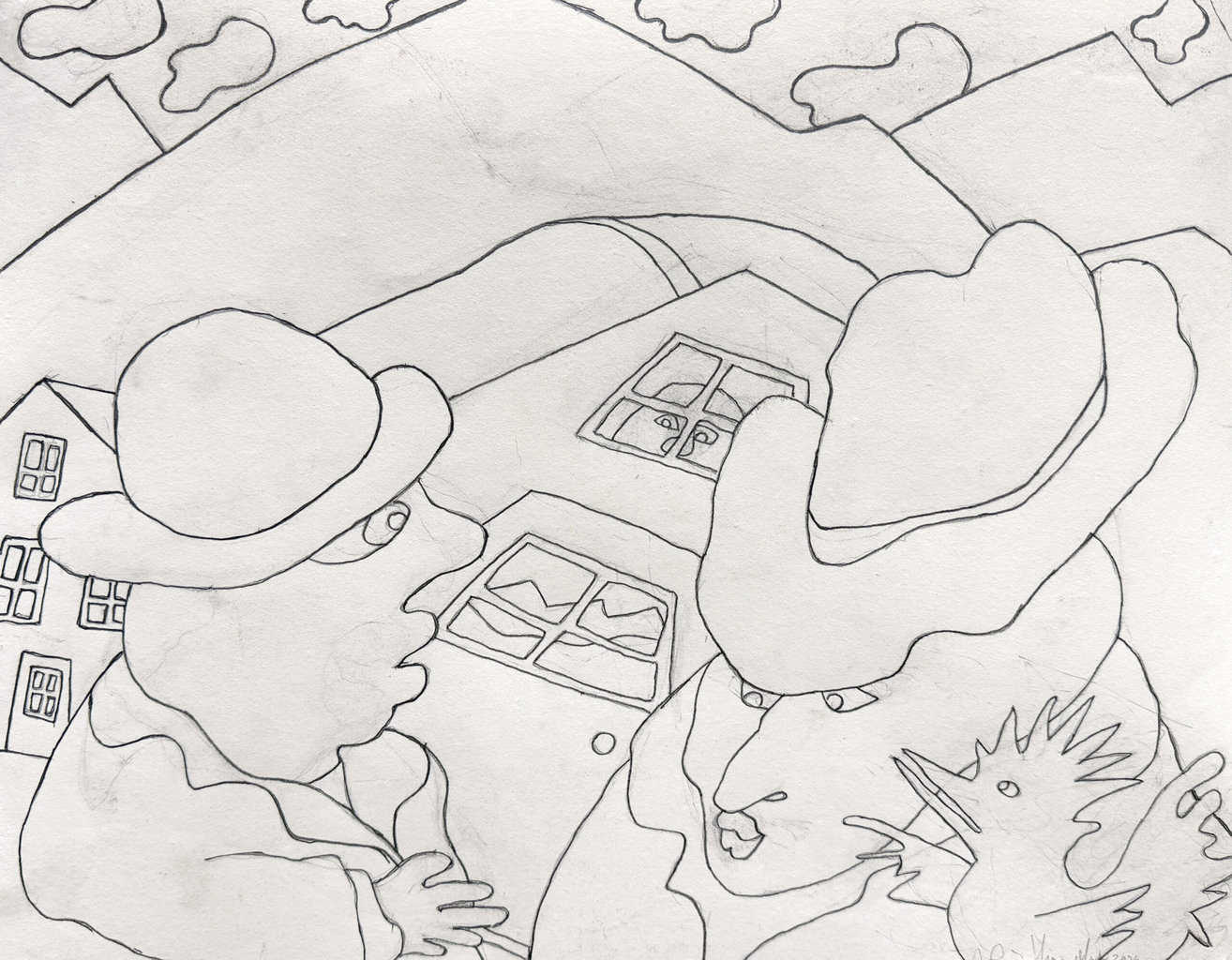 Why Don’t You Contemplate Your Childhood? | 2025 pencil on card, 3 x 5″